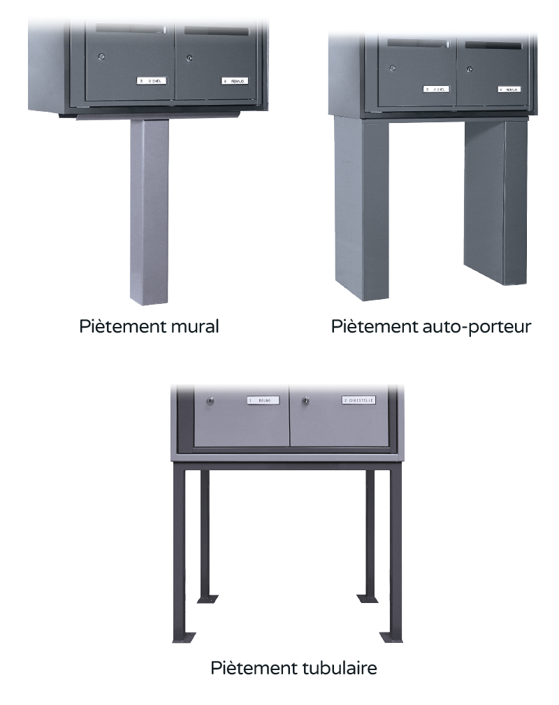 Le piètement auto-porteur est composé d’une tablette soutien et de pieds de section 340 x 100 mm.