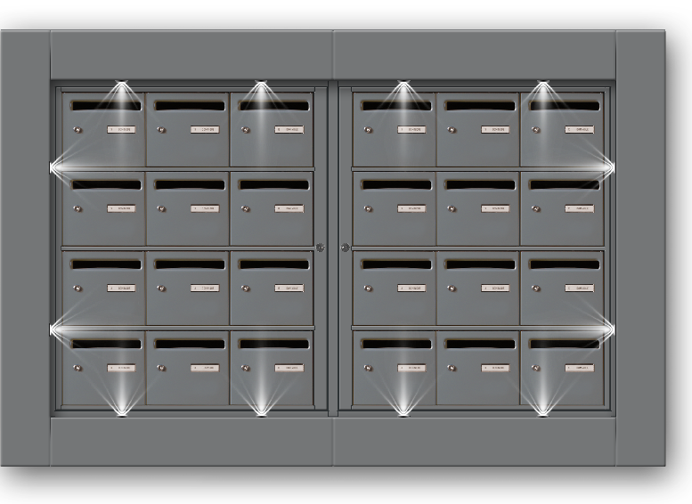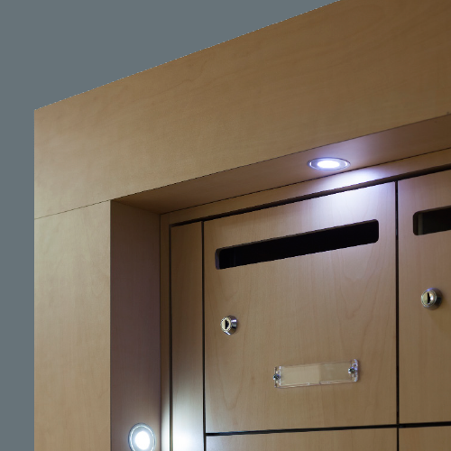 BOÎTES AUX LETTRES NORMALISÉES INTÉRIEUR / INSPIRATION GALLERIE NF D 27 404 TABLEAU 2 DESCRIPTIF Un encadrement en saillie équipé de leds, permet de diffuser une lumière arasante qui met en valeur la façade des boites aux lettres.